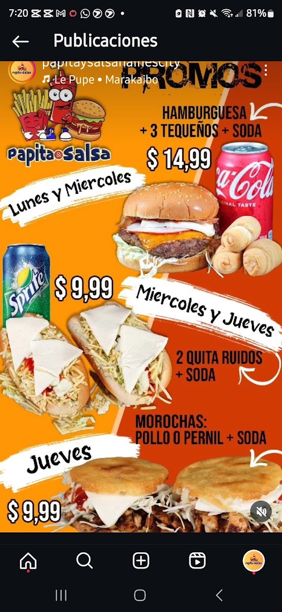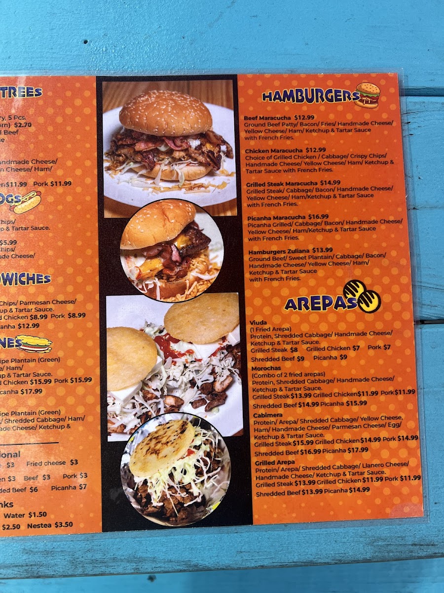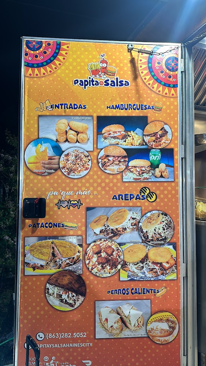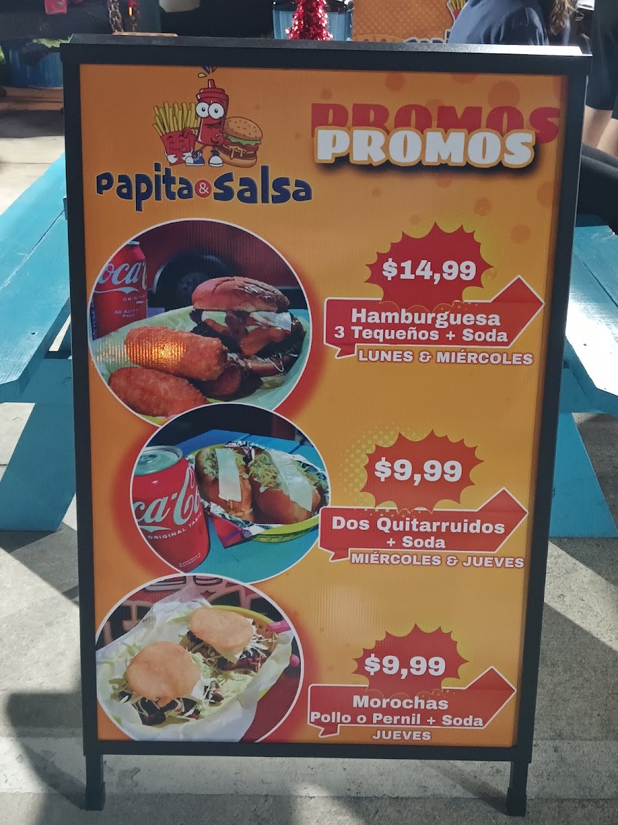Papita & Salsa offers a vibrant and flavorful menu that captures the essence of traditional Latin cuisine with a unique twist. For appetizers, diners can enjoy Tequeños and various Papas Locas, including Papas Locas Carne Asada, Papas Locas Pollo Asado, and Papas Locas de Pernil, all of which promise a delightful combination of textures and flavors. Moving to the hot dog section, the Perros Caliente come in two options: Quita Ruido and the cheesy Quita Ruido con Queso. The restaurant's Panes include flavorful choices like the Maracucho Carne Asada, Maracucho Pollo Asado, and Maracucho de Pernil, offering a satisfying bite for any meat lover. For those who enjoy a crunch, the Patacones are available in three varieties: Patacon de Carne Asada, Patacon de Pollo, and Patacones de Pernil. If you're in the mood for a burger, try the Maracucha de Carne, Maracucha de Pollo, or Maracucha de Carne Asada. The Arepas section features comforting options like the Viuda de Carne Asada, Viuda de Pollo, and Viuda de Pernil, along with Morochas de Carne Asada and Morochas de Pollo for a tasty variation. For those looking to add extra flavor, the Adicionales menu offers delicious sides like 1/2 Queso de Mano, Pollo Asado, Carne Pernil, and Carne Asada. To wash it all down, guests can choose from a variety of Sodas, Maltas & Frescolita, or simply Agua. Whether you’re craving something hearty or just a light snack, Papita & Salsa’s menu promises something for everyone.